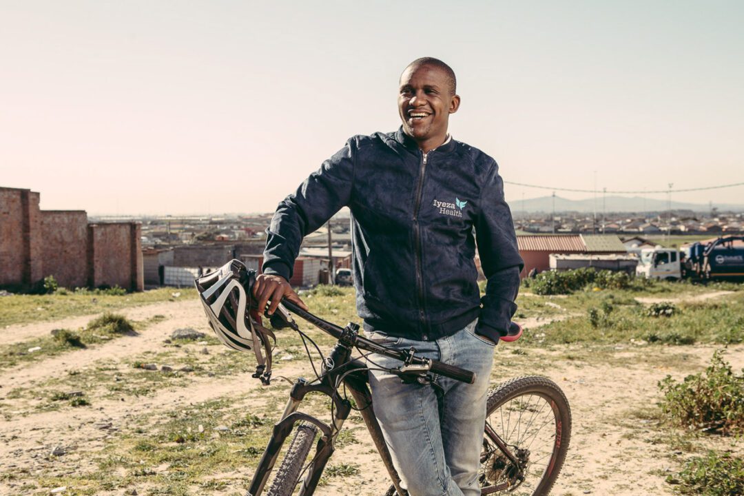 Man smiling next to his bicycle outdoors by Cape Town photographer Casey Crafford