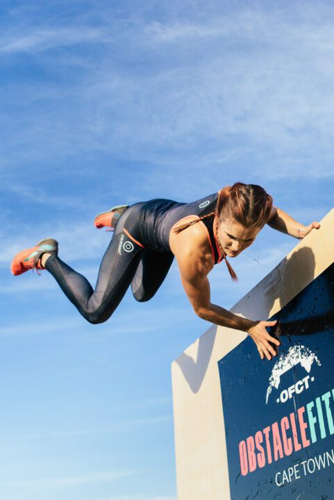 Woman overcoming obstacle in a fitness challenge by Cape Town photographer Casey Crafford